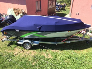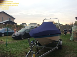 Husa de stationare si transport cu chinga,acopera barca pana la nivelul de sub bordajul ambarcatiuni,chinga impreuna cu cei doi cricheti de strangere permite husei o strangere si o intindere perfecta pe chila ambarcatiuni.