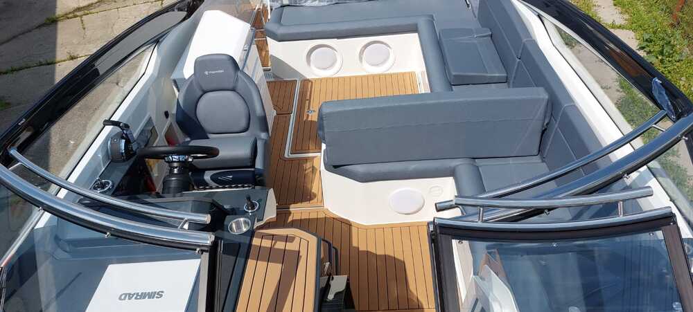 • Pack Essential; include claxon, mobilier in cabina prova, frigider 30litri in cockpit, dus cu apa rece, toaleta actionata electric, set draperii