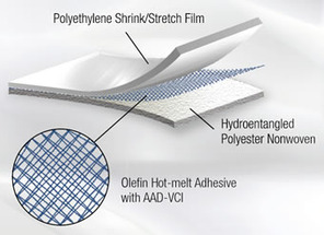 Stratul exterior Transhield este material de culoare alb strălucitor shrink/stretch film din polietilena. Stratul de mijloc este un adeziv termofuzibil care nu conţine solvenţi. Stratul interior este un material moale, poliester.