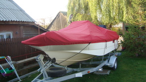 Husa de stationare si transport cu chinga,acopera barca pana la nivelul de sub bordajul ambarcatiuni,chinga impreuna cu cei doi cricheti de strangere permite husei o strangere si o intindere perfecta pe chila ambarcatiuni.