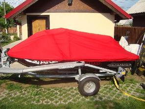 Husa de stationare si transport cu chinga,acopera barca pana la nivelul de sub bordajul ambarcatiuni,chinga impreuna cu cei doi cricheti de strangere permite husei o strangere si o intindere perfecta pe chila ambarcatiuni.