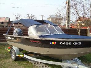 Husa de mars,se poate folosi si ca bimini-top,,parasolar daca se desfac geamurile laterale,care sunt prinse cu fermoare de partea superioara,si cu capse de chila barci.