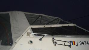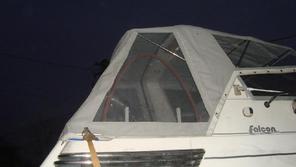 Husa de mars,se poate folosi si ca bimini-top,,parasolar daca se desfac geamurile laterale,care sunt prinse cu fermoare de partea superioara,si cu capse de chila barci.