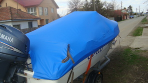 • Husa de stationare si transport cu chinga,acopera barca pana la nivelul de sub bordajul ambarcatiuni,chinga impreuna cu cei doi cricheti de strangere permite husei o strangere si o intindere perfecta pe chila ambarcatiuni.