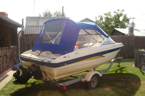 Husa de mars,se poate folosi si ca bimini-top,,parasolar daca se desfac geamurile laterale,care sunt prinse cu fermoare de partea superioara,si cu capse de chila barci.