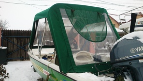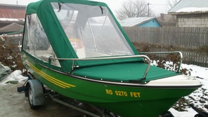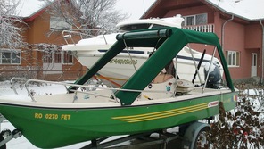 Husa de mars,se poate folosi si ca bimini-top,,parasolar daca se desfac geamurile laterale,care sunt prinse cu fermoare de partea superioara,si cu capse de chila barci.