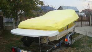 • Husa de stationare si transport cu chinga,acopera barca pana la nivelul de sub bordajul ambarcatiuni,chinga impreuna cu cei doi cricheti de strangere permite husei o strangere si o intindere perfecta pe chila ambarcatiuni.