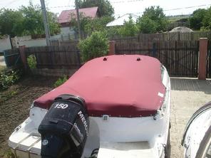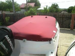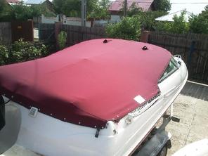 Husa de stationare si transport cu capse si butoni cu blocaj,se fixseaza pe barca cu ajutorul capselor ,butoni se pun in locurile unde exista riscul de desfacere a capselor.Pe marginea husei se face un tiv dublat cu chinga,pt.a evita smulgerea capselor din husa.