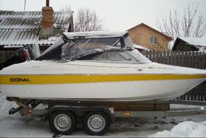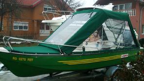 Husa de mars,se poate folosi si ca bimini-top,,parasolar daca se desfac geamurile laterale,care sunt prinse cu fermoare de partea superioara,si cu capse de chila barci.