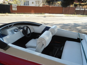 Barca fibra shakespeare 14ft Rosu-Alb,motor evinrude 60cp,5persoane,scaune piele,stare de functionare impecabila+platforma inmatriculata+prelata stationare+eagle cuda 128!pret 2999E neg.detalii la telefon