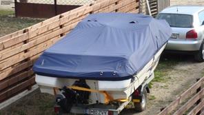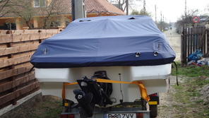 • Husa de stationare si transport cu chinga,acopera barca pana la nivelul de sub bordajul ambarcatiuni,chinga impreuna cu cei doi cricheti de strangere permite husei o strangere si o intindere perfecta pe chila ambarcatiuni.