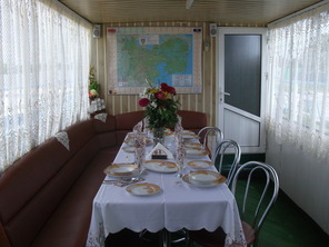 baie, tualete,living,terasa,bucatar,ospatar,3mese pe zi,2barci cu motor,1cu rame,1barca rapida pentru diferite urgente,salupa remorcher pentru a ne putea deplasa la noi locuri de pescuit dupa preferintele grupului. |