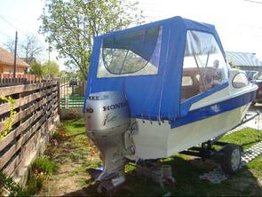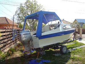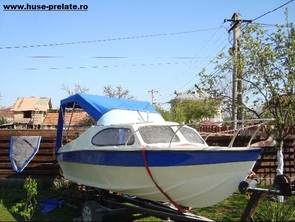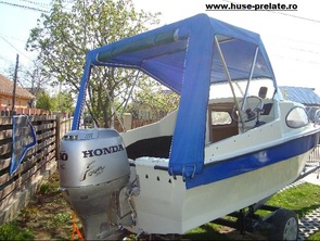 Husa de mars,se poate folosi si ca bimini-top,,parasolar daca se desfac geamurile laterale,care sunt prinse cu fermoare de partea superioara,si cu capse de chila barci.
