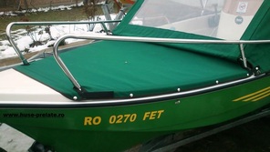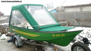 Husa de mars,se poate folosi si ca bimini-top,,parasolar daca se desfac geamurile laterale,care sunt prinse cu fermoare de partea superioara,si cu capse de chila barci.