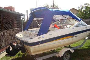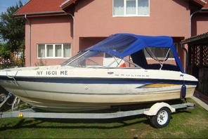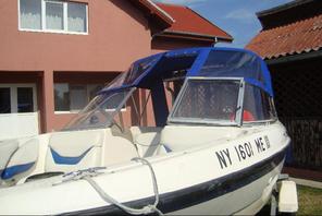 Husa de mars,se poate folosi si ca bimini-top,,parasolar daca se desfac geamurile laterale,care sunt prinse cu fermoare de partea superioara,si cu capse de chila barci.