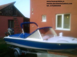 • Husa de stationare si transport cu capse si butoni cu blocaj,se fixseaza pe barca cu ajutorul capselor ,butoni se pun in locurile unde exista riscul de desfacere a capselor.Pe marginea husei se face un tiv dublat cu chinga,pt.a evita smulgerea capselor din husa.