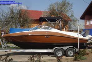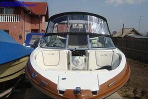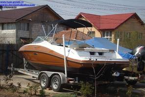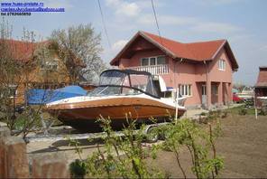 Husa de mars,se poate folosi si ca bimini-top,,parasolar daca se desfac geamurile laterale,care sunt prinse cu fermoare de partea superioara,si cu capse de chila barci.