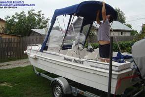 Husa de mars,se poate folosi si ca bimini-top,,parasolar daca se desfac geamurile laterale,care sunt prinse cu fermoare de partea superioara,si cu capse de chila barci.
