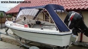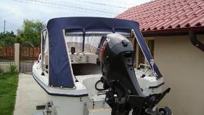 Husa de mars,se poate folosi si ca bimini-top,,parasolar daca se desfac geamurile laterale,care sunt prinse cu fermoare de partea superioara,si cu capse de chila barci.