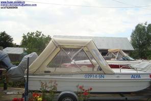 Husa de mars,se poate folosi si ca bimini-top,,parasolar daca se desfac geamurile laterale,care sunt prinse cu fermoare de partea superioara,si cu capse de chila barci.