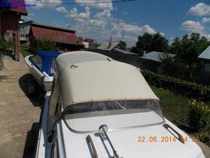 Husa de mars,se poate folosi si ca bimini-top,,parasolar daca se desfac geamurile laterale,care sunt prinse cu fermoare de partea superioara,si cu capse de chila barci.