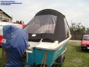 Husa de mars,se poate folosi si ca bimini-top,,parasolar daca se desfac geamurile laterale,care sunt prinse cu fermoare de partea superioara,si cu capse de chila barci.