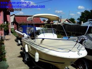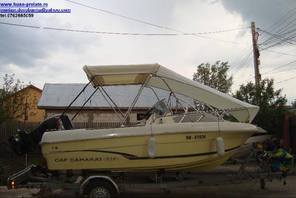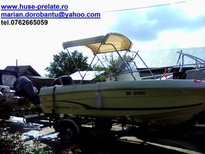 Husa de mars,se poate folosi si ca bimini-top,,parasolar daca se desfac geamurile laterale,care sunt prinse cu fermoare de partea superioara,si cu capse de chila barci.