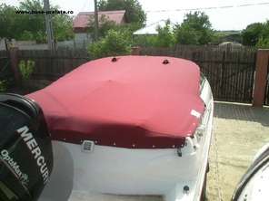 • Husa de stationare si transport cu capse si butoni cu blocaj,se fixseaza pe barca cu ajutorul capselor ,butoni se pun in locurile unde exista riscul de desfacere a capselor.Pe marginea husei se face un tiv dublat cu chinga,pt.a evita smulgerea capselor din husa.