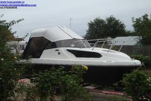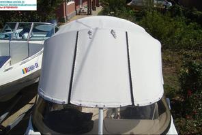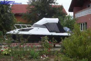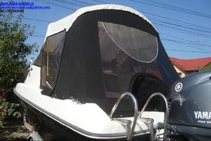 Husa de mars,se poate folosi si ca bimini-top,,parasolar daca se desfac geamurile laterale,care sunt prinse cu fermoare de partea superioara,si cu capse de chila barci.