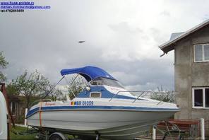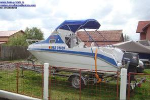 Husa de mars,se poate folosi si ca bimini-top,,parasolar daca se desfac geamurile laterale,care sunt prinse cu fermoare de partea superioara,si cu capse de chila barci.