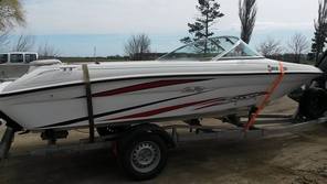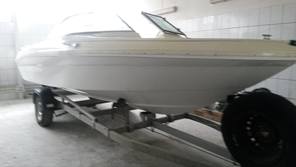 Acesta barca Searay 175BR model 1997 a fost dezechipata, reparata cu chit epoxidic Watertite, i-a fost inlocuit bandoul de protectie, a slefuita, vopsita cu antiderapant Interdeck si vopsita aproape integral Perfection, apoi polishata .. etc in doar sapte zile, lucru de admirat.avand in vedere ca au lucrat pentru prima oara cu vopsele poliuretanice International Yacht Paint;