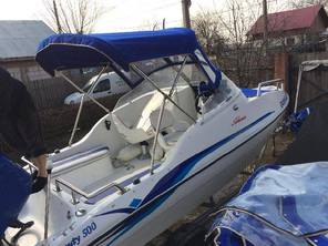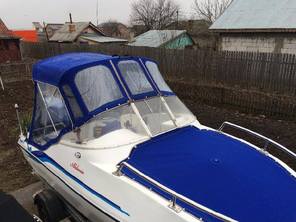 Husa de mars,se poate folosi si ca bimini-top,,parasolar daca se desfac geamurile laterale,care sunt prinse cu fermoare de partea superioara,si cu capse de chila barci.