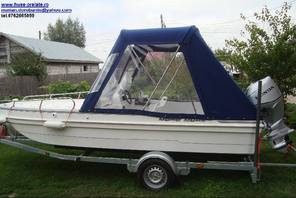 Husa de mars,se poate folosi si ca bimini-top,,parasolar daca se desfac geamurile laterale,care sunt prinse cu fermoare de partea superioara,si cu capse de chila barci.
