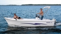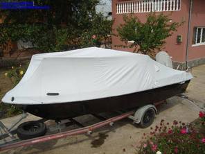 Husa de stationare si transport cu chinga,acopera barca pana la nivelul de sub bordajul ambarcatiuni,chinga impreuna cu cei doi cricheti de strangere permite husei o strangere si o intindere perfecta pe chila ambarcatiuni.