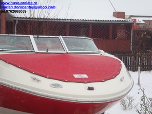Husa de stationare si transport cu capse si butoni cu blocaj,se fixseaza pe barca cu ajutorul capselor ,butoni se pun in locurile unde exista riscul de desfacere a capselor.Pe marginea husei se face un tiv dublat cu chinga,pt.a evita smulgerea capselor din husa.