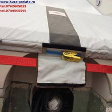 Husa de stationare si transport cu chinga,acopera barca pana la nivelul de sub bordajul ambarcatiuni,chinga impreuna cu cei doi cricheti de strangere permite husei o strangere si o intindere perfecta pe chila ambarcatiuni.