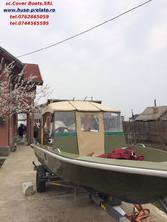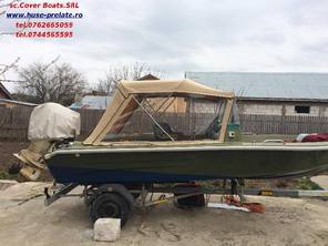 Husa de mars,se poate folosi si ca bimini-top,,parasolar daca se desfac geamurile laterale,care sunt prinse cu fermoare de partea superioara,si cu capse de chila barci.