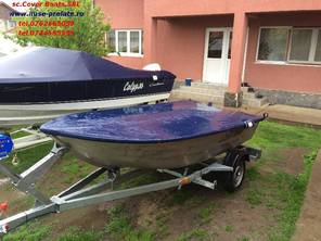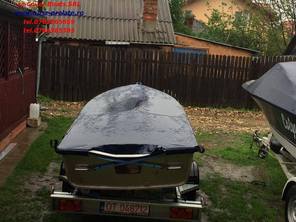 Husa de stationare si transport cu chinga,acopera barca pana la nivelul de sub bordajul ambarcatiuni,chinga impreuna cu cei doi cricheti de strangere permite husei o strangere si o intindere perfecta pe chila ambarcatiuni.