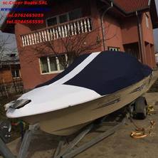 Husa de stationare si transport cu chinga,acopera barca pana la nivelul de sub bordajul ambarcatiuni,chinga impreuna cu cei doi cricheti de strangere permite husei o strangere si o intindere perfecta pe chila ambarcatiuni.