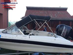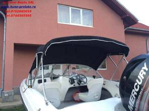 Husa de mars,se poate folosi si ca bimini-top,,parasolar daca se desfac geamurile laterale,care sunt prinse cu fermoare de partea superioara,si cu capse de chila barci.