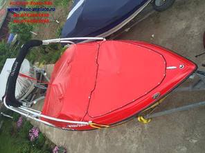 Husa de stationare si transport cu capse si butoni cu blocaj,este acea husa care acopera barca pe timpul stationari pe apa si uscat si in timpul transportului.
