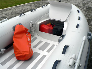 The hulls of the Classic 380 is built of 2.5mm thick powder coated marine grade aluminium. The tubes are made of 1100 dtex coated fabric.