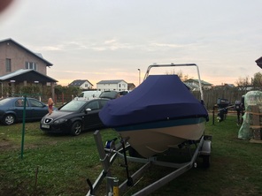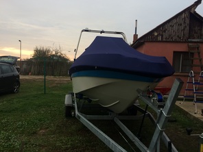 Husa de stationare si transport cu chinga,acopera barca pana la nivelul de sub bordajul ambarcatiuni,chinga impreuna cu cei doi cricheti de strangere permite husei o strangere si o intindere perfecta pe chila ambarcatiuni.