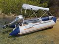Barca Kolibri 3.6 metri, 4 compartimente de aer, podea rigida demontabila, stare impecabila, fără zgârieturi sau petice, 2 băncuțe, vâsle, parasolar cu filtru UV, ancoră 5 KG, rezervor 20l cu cupla rapida de carburant, antifurt, motor Honda 15 HP 4 timpi, consum mediu 2l/ora, 4 persoane la viteza 33 km/h consum 3l/h, pornire la prima sfoara, recent servisat complet, hidrofoil pentru glisare rapidă, roti ajutătoare rabatabile pentru lansarea la apa, elice de rezerva, vâsle, cărucior mare pentru transport și depozitare motor, compresor special pentru umflat și dezumflat, etc. Folosita în total 3 săptămâni în Grecia fără incidente. Se poate transporta împachetata în gentile speciale, într-o mașină de dimensiuni normale și apoi asambla și lansa la apa când ajungi la destinație. Extrem de stabila inclusiv pe mare, însă nu recomand sa va aventurați în larg. |