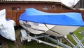 Husa de stationare si transport cu chinga,acopera barca pana la nivelul de sub bordajul ambarcatiuni,chinga impreuna cu cei doi cricheti de strangere permite husei o strangere si o intindere perfecta pe chila ambarcatiuni.