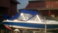 Husa de mars,se poate folosi si ca bimini-top,,parasolar daca se desfac geamurile laterale,care sunt prinse cu fermoare de partea superioara,si cu capse de chila barci.