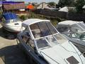 Husa de mars,se poate folosi si ca bimini-top,,parasolar daca se desfac geamurile laterale,care sunt prinse cu fermoare de partea superioara,si cu capse de chila barci.
