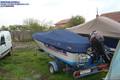 Husa de stationare si transport cu chinga,acopera barca pana la nivelul de sub bordajul ambarcatiuni,chinga impreuna cu cei doi cricheti de strangere permite husei o strangere si o intindere perfecta pe chila ambarcatiuni.