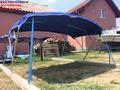 Constructia acestui ansamblu este din teava de inox sau aluminiu cu chituri de asamblare din inox,tesutul din partea de sus poate fi