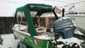 Husa de mars,se poate folosi si ca bimini-top,,parasolar daca se desfac geamurile laterale,care sunt prinse cu fermoare de partea superioara,si cu capse de chila barci.